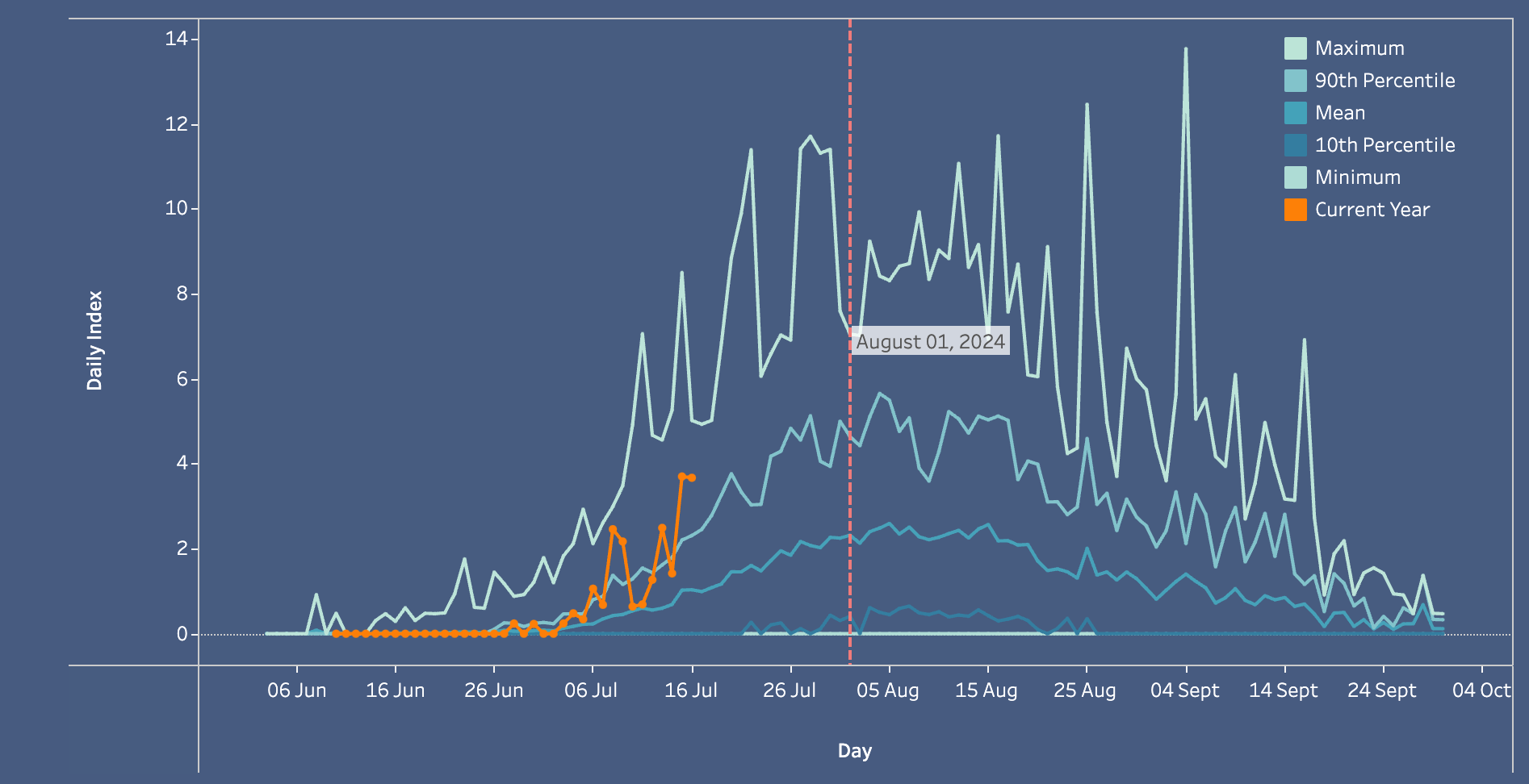 Image: Screenshot from Skeena Knowledge Trust – Skeena Tyee Test Fishery Salmon & Steelhead Returns dataset, last updated 18 July 2024. Steelhead only data selected.