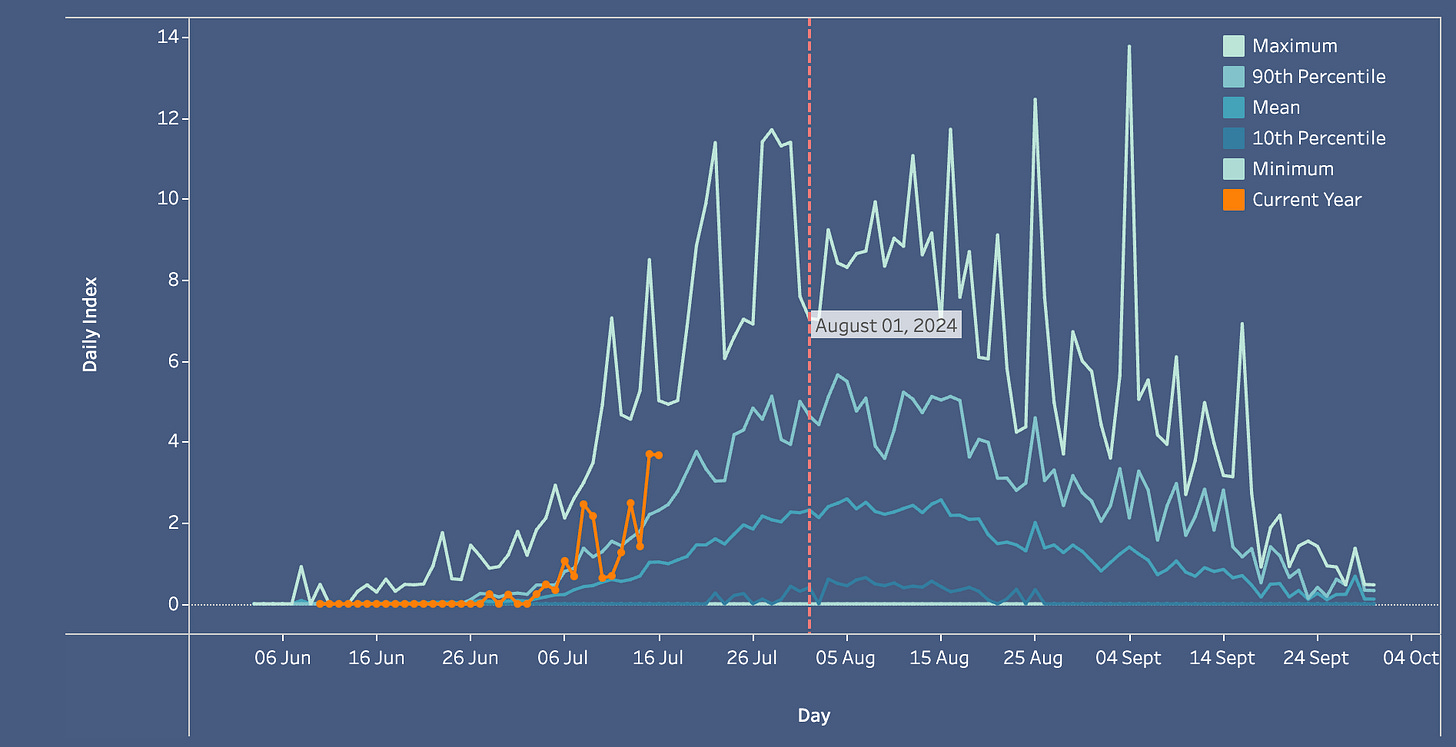 Tyee Test Fishery Steelhead Return via Skeena Wild Conservation Trust shows early promise for strong steelhead with their test netting results above the 90th percentile for July. Let’s hope it holds up through the season.